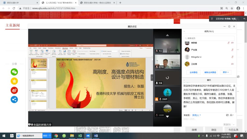 4月16日下午,第七届“丝绸之路青年学者研讨会”机械分论坛以线上方式召开。来自海内外不同国家的青年学者、学院青年人才及各相关领域的团队负责人通过网络会议“见面”、交流。188BET金宝搏官网院长陈雪峰教授主持会议。