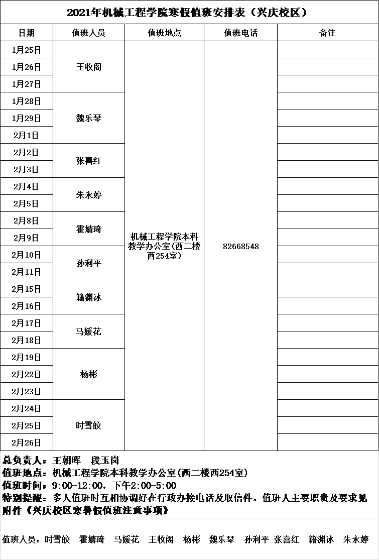 2021年188BET金宝搏官网寒假值班安排(兴庆校区)